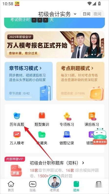 在题库页面选择历年真题。