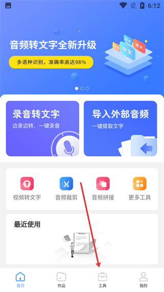 在首页点击底部的【工具】选项,就能进入音频/视频工具的功能集合页面,在那里可以选择各类处理工具。