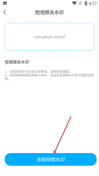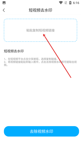 在短视频去水印页面,把复制好的短视频链接粘贴到输入框里,为去水印处理做准备。