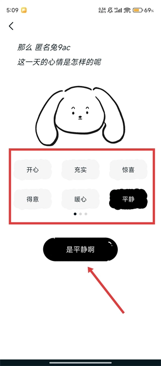 3、随后挑选当天心情,比如【平静】,点击【是平静啊】,记录心情状态十分便捷。