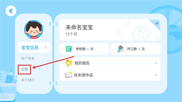 进入家长中心页面后,找到左侧功能栏中的【设置】选项并点击,即可进入对应的设置功能页面。