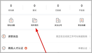 1. 完成北极星招聘的安装后,打开软件并点击个人中心,接着在该界面找到并点击“附件简历”选项。