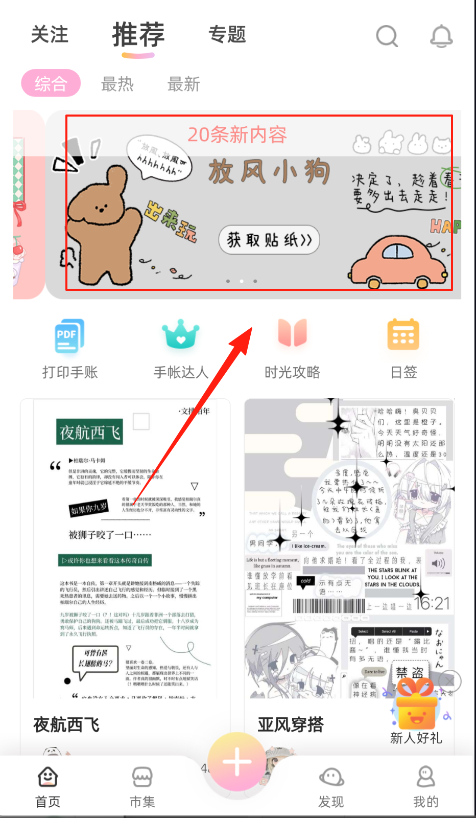 2、活动板块。首页上方设有近期活动展示区,以滚动形式呈现相关内容,所有活动均可报名参与,进一步丰富了手帐相关的活动形式与内容。