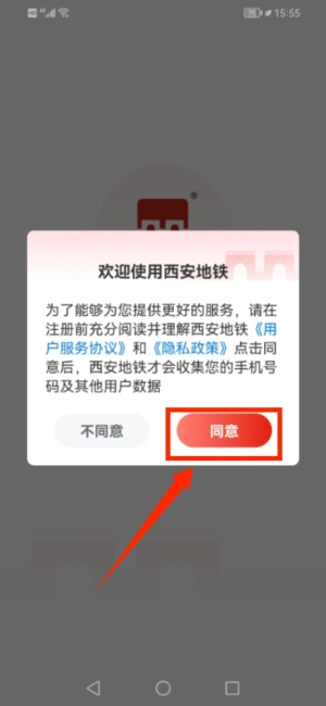首次打开应用时,请在弹出的欢迎窗口中点击“同意”按钮,即可进入登录页面。