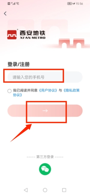 2、输入手机号并勾选协议,点击箭头完成登录。