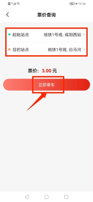 4、选择起点与终点后查看票价,即可使用乘车服务。