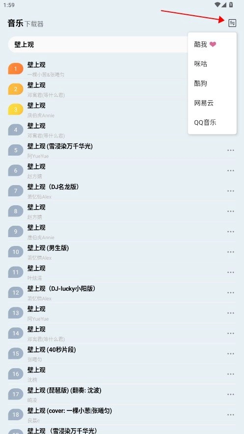 右上角还能切换歌源,找到更多音乐资源