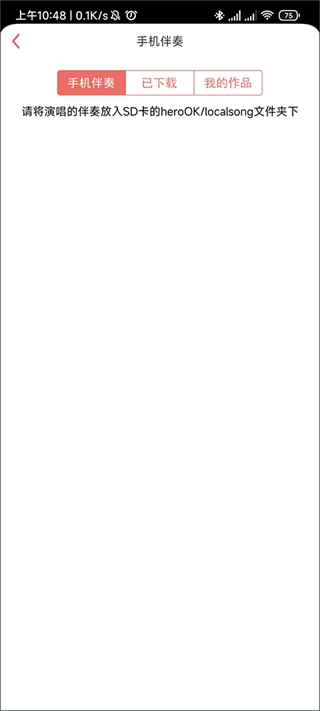3、此时我们尚未将伴奏上传至软件中,进入手机伴奏界面后会看到提示,要求我们把文件放入指定文件夹,这时只需前往手机的文件管理进行移动操作即可。