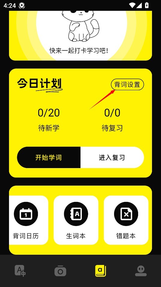 4、而且还可以在首页下方点击“单词本”学习单词。