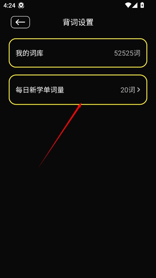 3、在新打开的页面里能看到“每日新学单词量”这一选项,点击它即可。