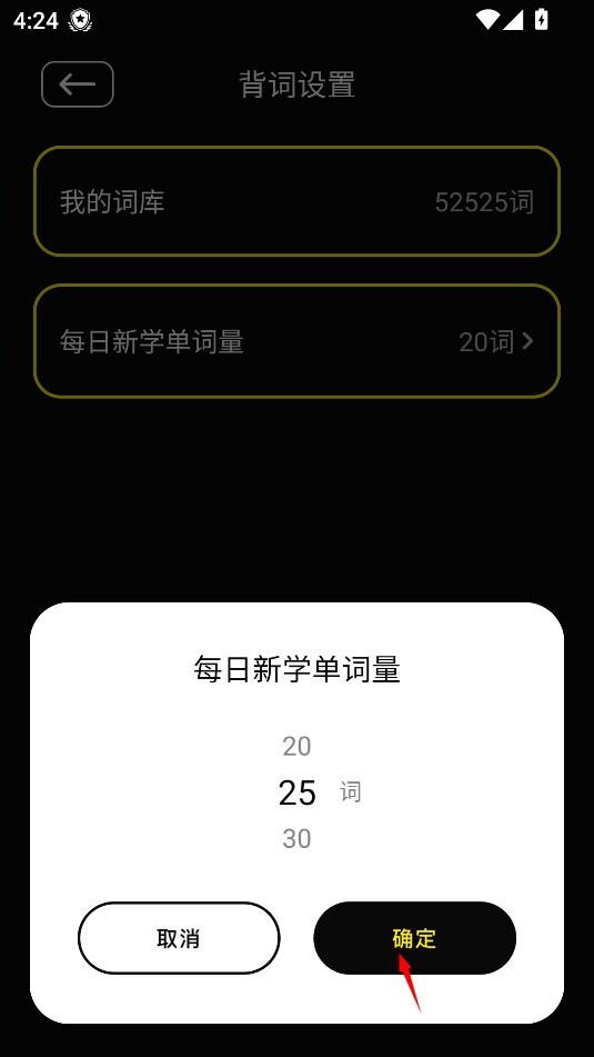 4、接着滑动数字设置好要背诵的单词数量,点击“确定”按钮就可以了。