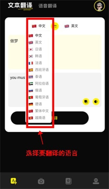【语音翻译】支持语音输入识别,可快速将内容翻译成中文、英文等多种外文。