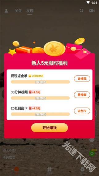 1、新人上线就可以领取5元,然后点击观看视频