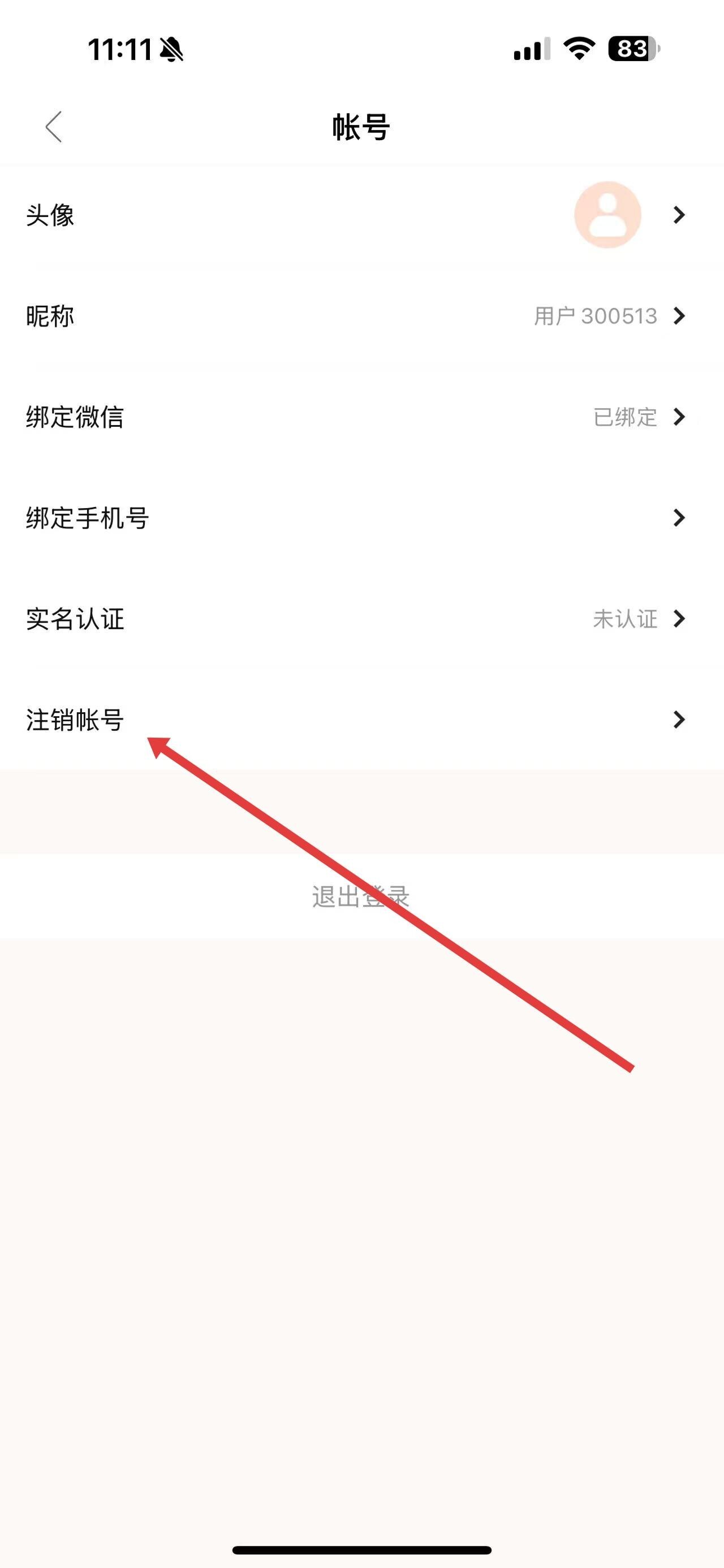 3、在帐号设置界面里,找到并点击注销帐号选项。