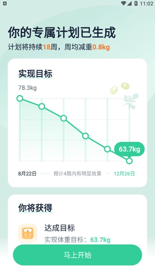 6、最后会生成你的专属计划,并将每周减重情况显示出来。