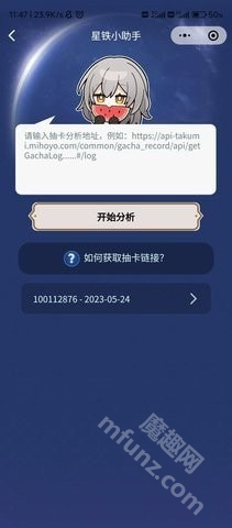 3.把分析码或者分析链接复制到文本框里,就可以开启抽卡分析了