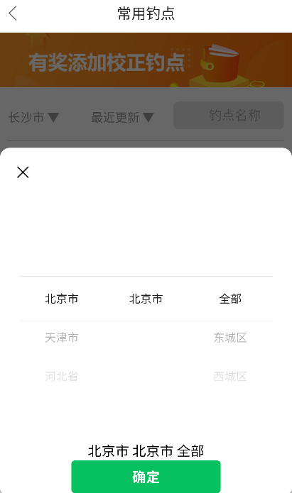 选择所在地区后点击“查询”,就能搜索到附近的钓点。