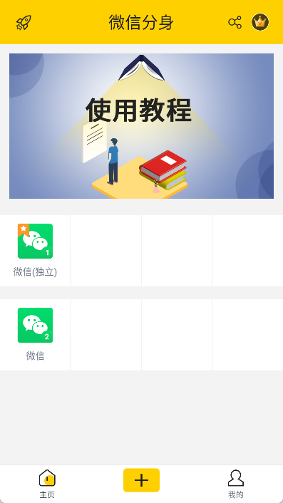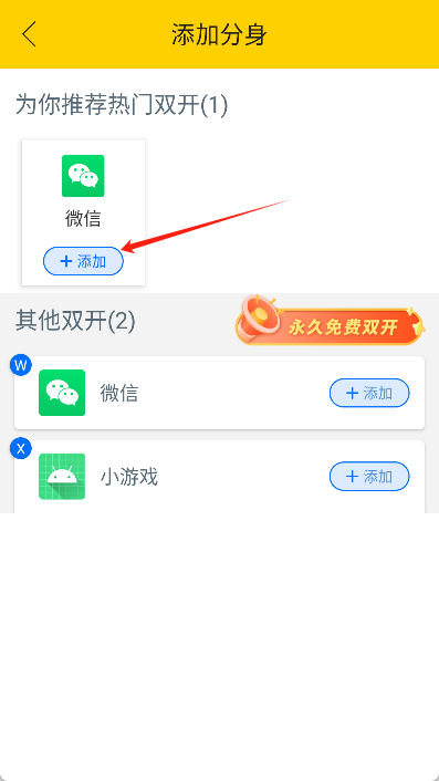 2、创建分身:点击“+”好并选择微信进行添加;