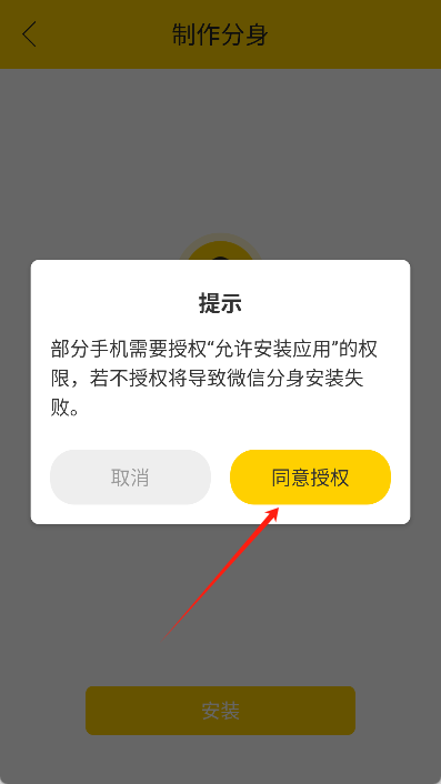 已同意安装“微信分身1”应用,待安装完成后打开就能使用。