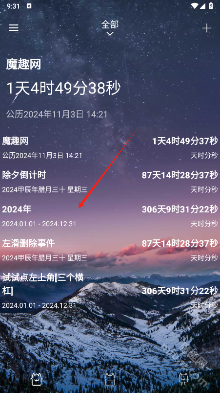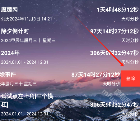 5、你也可以在首页找到想要删除的事件,直接向右滑动该事件条目,然后点击右侧出现的删除按钮即可完成操作。