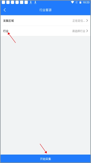 4、点击“行业客源”选项,这一步是通过选择对应的行业来寻找资源,之后点击“开始采集”按钮。