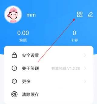 1、打开智慧笑联,点击“我的”,点击二维码。