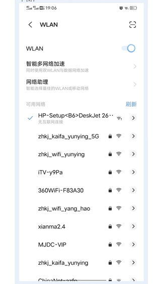 2、若您的打印机刚出厂,尚未进行任何配置,此时可打开手机WiFi,查找并连接打印机WiFi(WiFi名通常为打印机型号,WiFi密码可查看打印机说明书),如下图所示。