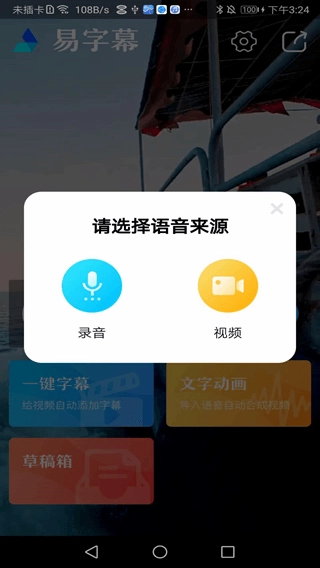 3. 你既能够选择录音,也可以选用已有的视频,借助文字动画迅速生成字幕内容,进而制作出个性化视频。