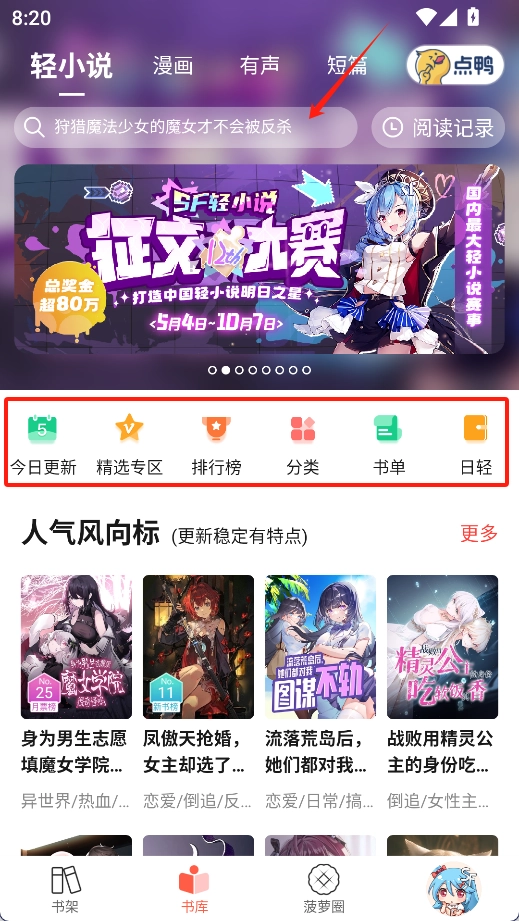 3、书库浏览:在主界面的书库板块中,你可以浏览各类轻小说,借助分类筛选、标签查找或是搜索功能,找到自己感兴趣的作品。