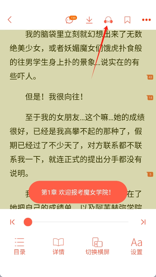 5、朗读模式:具备语音朗读功能,在阅读界面点击顶部的耳机图标即可开启该模式。