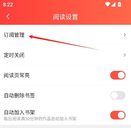 6、订阅管理:可通过“我的”界面进入“设置”,再依次点击“阅读设置”与“订阅管理”来执行相关操作。