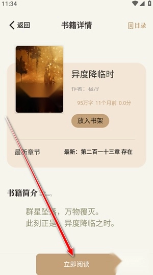 2. 在小说详情页面,点击「立即阅读」按钮,便能进入阅读界面。