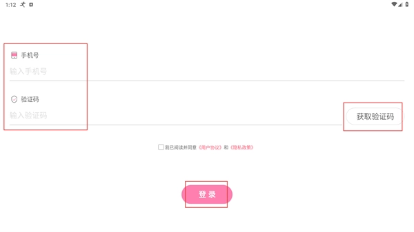 3、进入登录页面后,先输入手机号,接着点击【获取验证码】按钮,待收到验证码后将其填入对应输入框,随后勾选《用户协议》与《隐私政策》,最后点击【登录】按钮,即可完成账号登录操作。