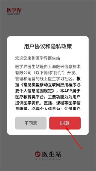1、在使用协议与隐私政策弹窗里点击同意按钮,即可进入登录页面。
