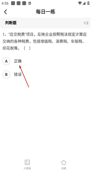 4、进入每日一练的判断题页面,仔细阅读题目内容后,选择对应的选项,完成该题目的回答操作。