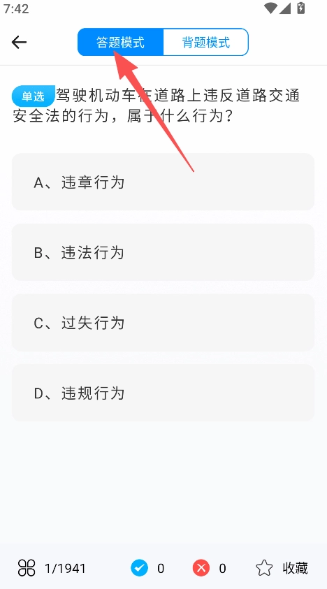 2、具备练习模式切换功能,在科目页面,用户可选择答题模式或背题模式开展练习。