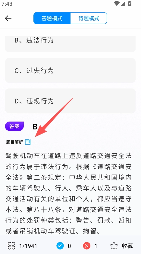 2、配备题目解析内容,其中涵盖法规知识点,可辅助理解题目背后的驾考知识,助力考点巩固。