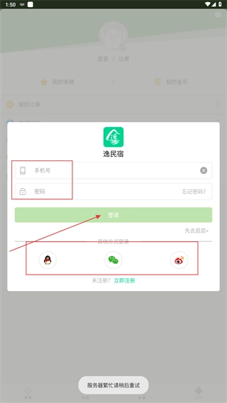 2、进入登录界面后,可输入手机号和密码并点击【登录】按钮完成登录,此外还能选择QQ、微信等第三方平台进行快捷登录。