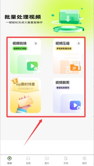 1、导入待处理文件:打开应用后,依据实际需求选定对应的功能模块,接着上传需进行转换、压缩或编辑操作的音视频及图片文件。