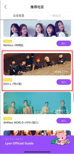 3、在社区里浏览并找到你喜欢的明星组合,点击【加入】按钮,按照要求填写账号信息就能完成订阅。