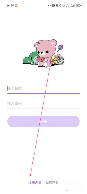 1、请在本网站完成软件与安装,打开应用后,点击首页的【注册会员】入口。