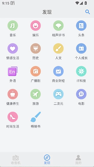 1、首页提供了多种分类电台推荐