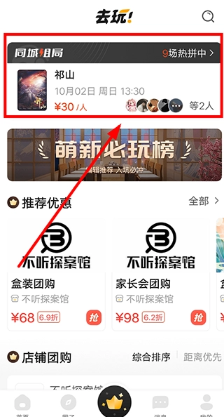 5、倘若你不想组局,还能在【同城组局】页面中,加入其他人发起的剧本杀组局活动。