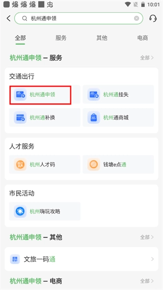 2、选择“杭州通申领”