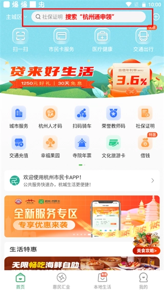 1、市民卡首页搜索“杭州通申领”