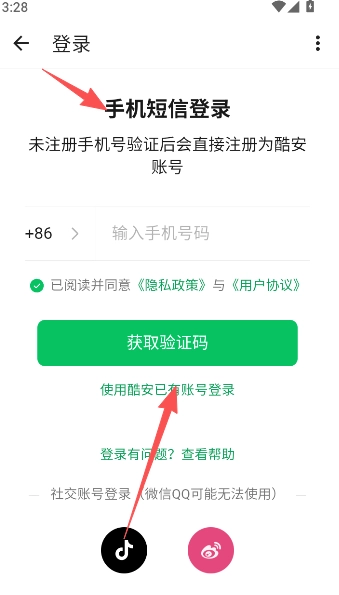 2、输入手机号码短信验证,快捷注册登录。