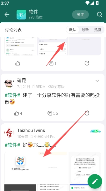 4、向下滑动页面,在当前评论区里查找自己需要的软件,也可以加入其他用户分享的群聊,在群聊当中获取软件。