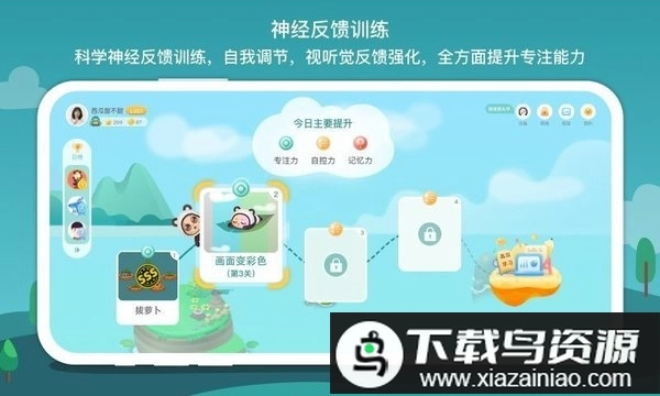 界面设计充满卡通元素,形象生动可爱,功能布局清晰合理;整体操作十分简便,用户能快速上手,适合不同年龄段的家长与孩子使用;软件内准备了多种训练模式,家长可根据孩子特点进行选择,针对性培养宝宝的专注能力。