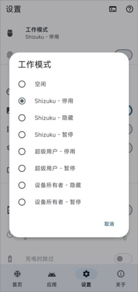 安装 雹 后,设置工作模式为Shizuku - 停用