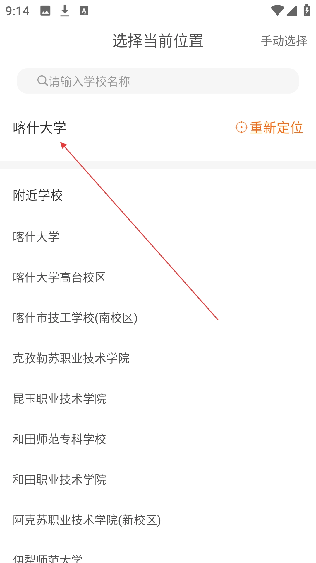 1. 在位置选择页面,点击【用户所在学校】选项,进入主页面。